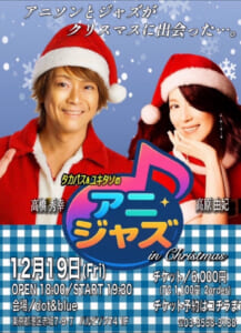 「炎神戦隊ゴーオンジャー」「特命戦隊ゴーバスターズ」等のスーパー戦隊主題歌、「探検ドリランド-1000年の真宝-」「フューチャーカード バディファイト ハンドレッド」等で知られるアニソン歌手の高橋秀幸と美魔女DIVA高原由妃が、12月19日に、東京・赤坂dot&blueで、タカパス&ユキタソのアニジャズ in Christmasを開催する。異色な2人のコラボライブゆえ、注目されている。